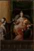 Zwei Männer vor einer Königin (Ahasver und Haman vor Ester?)