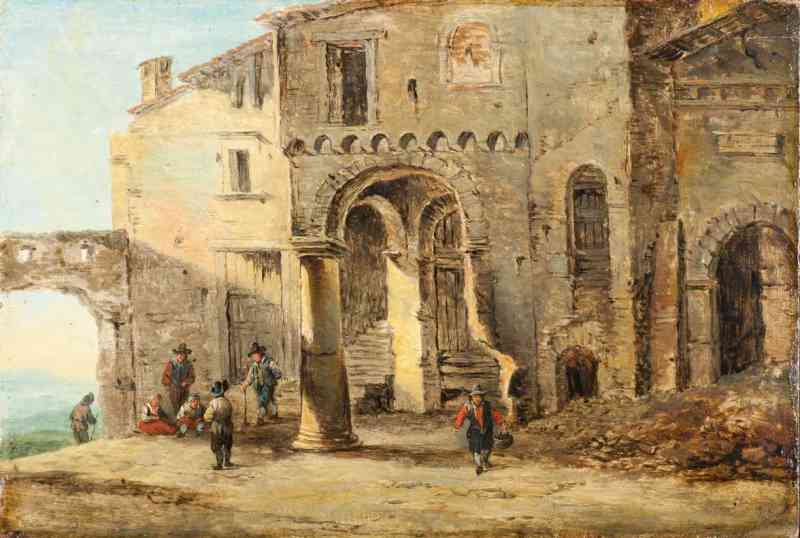Es handelt sich hier nicht um das Abbild von realen, topographisch benennbaren Gebäuden, sondern um komponierte Phantasielandschaften. Brand, der nie in Italien war, fügt hier unterschiedliche Versatzstücke zusammen. Möglicherweise dienten ihm dabei Stiche des Franz Edmund Weirotter (1730–1771) als Anregung, die ganz vergleichbare römische Gebäude großformatig in Szene setzten.