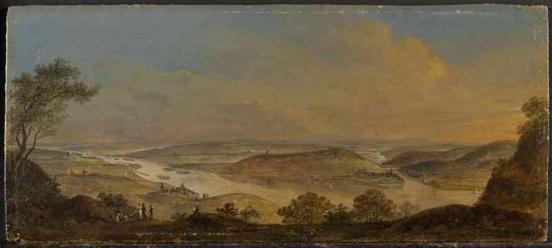Die Ansicht ist von einem Ort aus aufgenommen, der zu den bedeutendsten frühen Landschaftsparks in Deutschland zählte, und zur Entstehungszeit des Gemäldes längst zu einem Kristallisationspunkt der romantischen Geisteskultur geworden war: Auf dem Niederwald, einem hoch über dem Rhein stehenden Bergplateau bei Rüdesheim direkt gegenüber Bingen. Hier hatte Carl Maximilian von Ostein, ein Neffe des Mainzer Kurfürsten Friedrich Carl von Ostein, ab 1764 einen Waldpark anlegen lassen, der den Besucher mit verschiedenen, heute nur zum Teil erhaltene Staffagebauten in wechselnde Stimmungen und Empfindungen versetzen sollte.