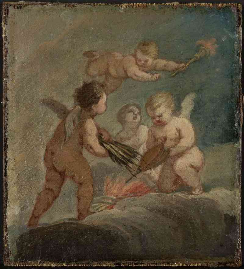Durch den schlechten Erhaltungszustand und die Übermalungen ist die Malerei kaum mehr zu beurteilen. Allein die ausgewogenen Kompositionen, die in ihren Proportionen und Bewegungen souverän gestalteten Putten und das spannungsreiche Spiel von Licht und Dunkel auf den kleinen Körpern verrät noch etwas von der Qualität der Inventionen. Auffällig sind die wie Unterzeichnungen wirkenden braunen Figurenumrisse, die den Kompositionen einen skizzenhaften, leichten Charakter verleihen.