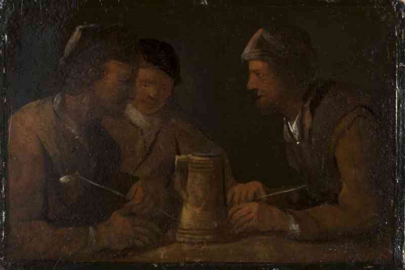 Ernst Friedrich Carl Prehn wies den beiden Genrebildchen von sehr dürftiger Qualität zu Unrecht den Namen des berühmten niederländischen Malers Jan Steen (1626–1679) zu. Sie sind jedoch vermutlich der Frankfurter Malerschule des 18. Jahrhunderts zuzuweisen, die besonders gern auf die niederländische Malerei des 17. Jahrhunderts zurückgriff.
