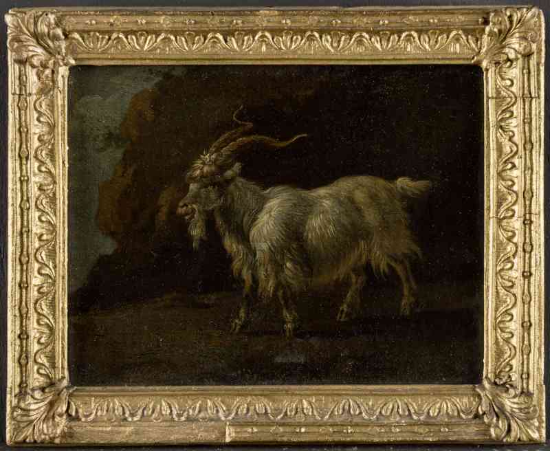 Beide Kleinformate zeigen jeweils Tiere in Ganzfigur vor nur angedeutetem Hintergrund. In Pr566 erkennt man eine Ziege mit braunem Fell, auf Pr567 ist ein Ziegenbock dargestellt. Ersteres Gemälde lässt sich auf ein niederländisches Vorbild zurückführen: Es handelt sich um die Kopie einer von Marcus de Bije (Bye, 1639–um 1690) nach Paulus Potter radierten Tiergruppe, die als siebtes Blatt in einer Folge von acht Radierungen mit Ziegen erschien. Der unbekannte Schöpfer der Bildchen scheint ähnliche Ziegendarstellungen, etwa aus der angeführten Radierungsfolge aufgegriffen und in freier Weise nachgeahmt haben.