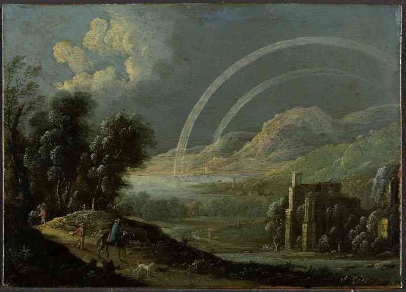 Die Landschaftsgründe sind wie Theaterkulissen hintereinander geschoben. Die bei genauem Betrachten unbefriedigende Perspektive resultiert sicherlich aus der eklektischen Methode Peter Bemmels, seine Bilder aus Versatzstücken zusammenzusetzen. Ikonographisch reiht sich Pr766 nahtlos in das Oeuvre Peter Bemmels ein, der auch den Rufnamen „Gewitterbemmel“ trägt und dessen Spezialität kleinformatige Landschaften mit extremen Wetterbedingungen sind, die sturmbewegte Baumwipfel, dramatisch verdunkelte Himmel und Blitzeinschläge zeigen.
