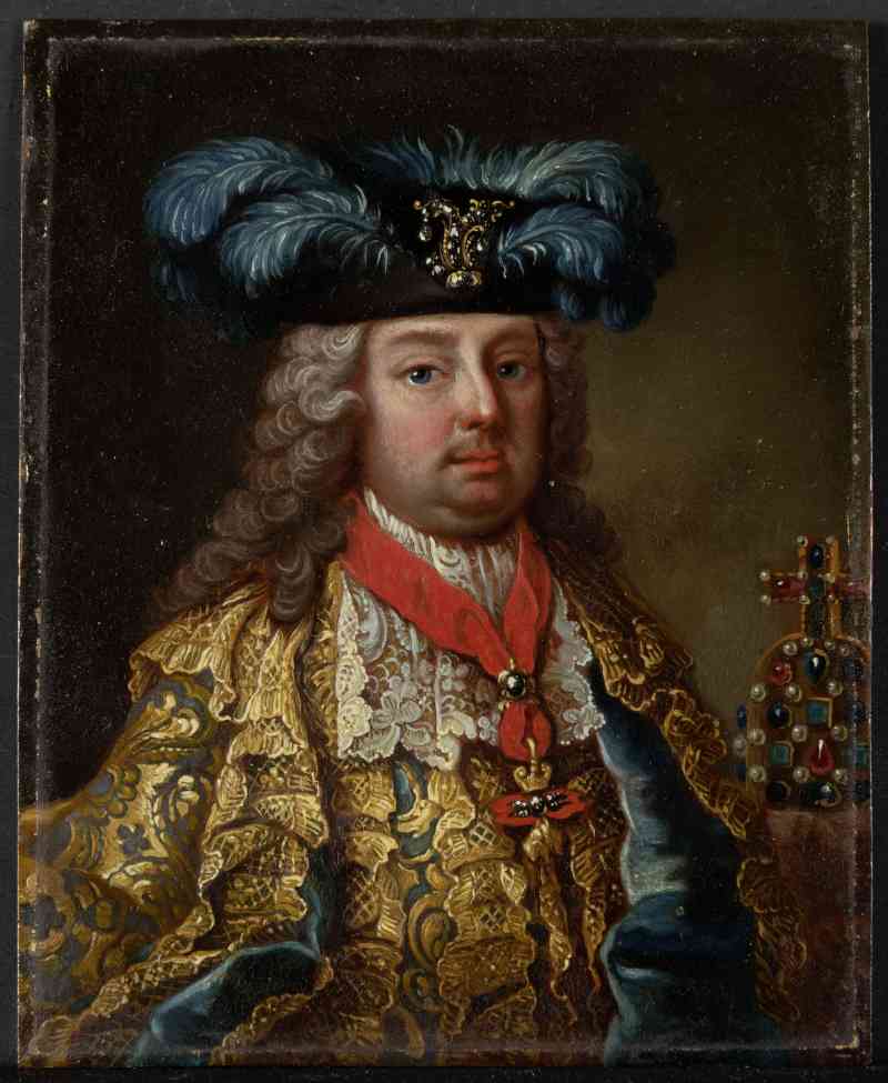 Bei den Bildchen handelt es sich um Kopien bzw. Variationen nach den offiziellen Kompositionen des Hofporträtisten Martin van Meytens II., die dieser in zahlreichen Varianten herzustellen hatte. Die Farbigkeit legt nahe, dass es sich bei den Vorlagen um Gemälde, nicht um Stiche handelt. Zumindest kannte der Maler der Prehn’schen Bilder die Farbigkeit der großformatigen Herrschergemälde und gab Franz I. Stephan mit dem von ihm bevorzugten blau-goldenen Brokatkleid wieder.