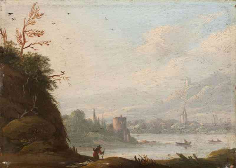 Die vier Flusslandschaften (Pr764 und Pr786 in Kasten 6, Pr787 und Pr843 in Kasten 5), die jeweils am unteren Bildrand ganz ähnlich in Sienafarbton mit der Jahreszahl 1675 bezeichnet sind, stammen von derselben Hand, weisen aber unterschiedliche Bildträger auf und stellen damit keine zusammengehörige Serie dar.