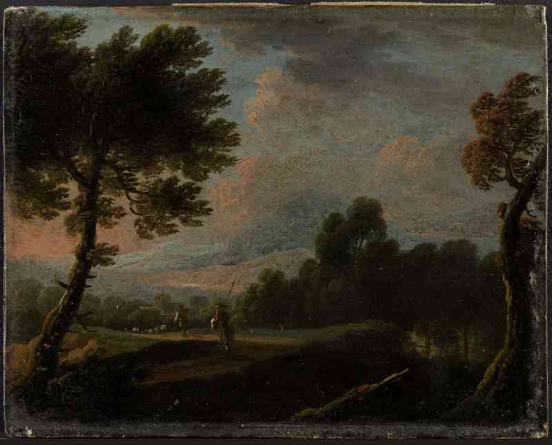 Obwohl eindeutig von der gleichen Hand, scheinen die beiden Bildchen von ihrer Komposition nicht unbedingt als Pendants gemalt zu sein, da sie etwas stereotyp den Bildraum nach links mit einem Baum im Vordergrund begrenzen. Zudem variiert der Blickpunkt in beiden Kompositionen erheblich. Da offensichtlich das schräg einfallende Licht am Beginn oder Ende eines Tages motivisch eine große Rolle spielt, könnte man eher an eine ursprünglich aus vier Bildern bestehende Tageszeitenfolge denken. Im Rechteck auf der linken Seite gehängt, könnte Pr689 dem Augenpunkt entsprechend über Pr688 angeordnet gewesen sein. Daraus ergäben sich eine Morgendarstellung bei Pr689 und eine Abendstimmung bei Pr688, die sich malerisch aber nur unzureichend umgesetzt finden.