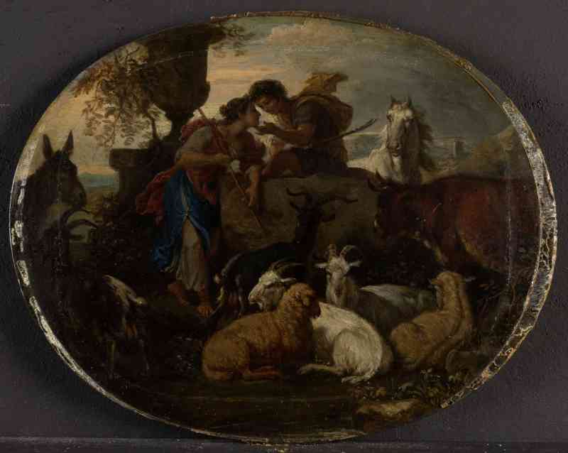 Die Motive Hirten und Herde ließen sich jedoch in das Oeuvre Adriaan van der Cabels eingliedern, der in seinen Landschafts- und Tierstücken das idyllische Hirtenleben verherrlichte. Pr310 und Pr321 ließen sich dabei in die Phase seines Italienaufenthaltes einzuordnen, in welcher der Maler unter dem Einfluss der großen Tierstücke Giovanni Benedetto Castigliones stand. Eine Zeichnung aus dieser Zeit zeigt dies ebenso wie die Prehn’schen Bilder mit einer ganz ähnlichen nahsichtigen, dichtgedrängten Anordnung von Ziegen, Schafen, Esel und Pferd in deren Mitte eine Mutter mit Kind sitzt.