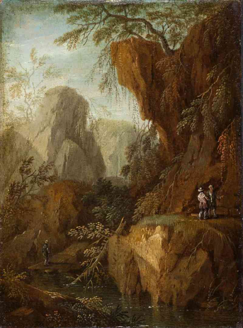 Felsige Gebirgsschluchten sind eine Spezialität des aus Ungarn stammenden Landschaftsmalers Josef Orient. Er absolvierte seine Lehrzeit bei Anton Faistenberger (1663–1708) in Wien, dem bis heute bekanntesten Mitglied dieser weit verzweigten Künstlerfamilie. Über ihn kam er zur Darstellung unwirtlicher, wilder Gegenden. Das unwegsame Gelände mit seinen abgestorbenen und umgefallenen Baumstämmen wird mit Figuren aus dem alltäglichen Leben wie Reisenden und Anglern staffiert. Auch in der Behandlung der Motive ist Orients Lehrmeister noch spürbar, etwa in der Art, wie die Felsen durch Grate und glatte Flächen sowie die Beleuchtung gestaltet sind. Ebenso wurde das schmale Hochformat von Faistenberger gern verwendet. Die Prehn’schen Bildchen sind also mit Sicherheit in diesen Wiener Umkreis einzuordnen. Inwieweit sie stilistisch tatsächlich Josef Orient zuzuschreiben sind, bleibt noch genauer zu prüfen.