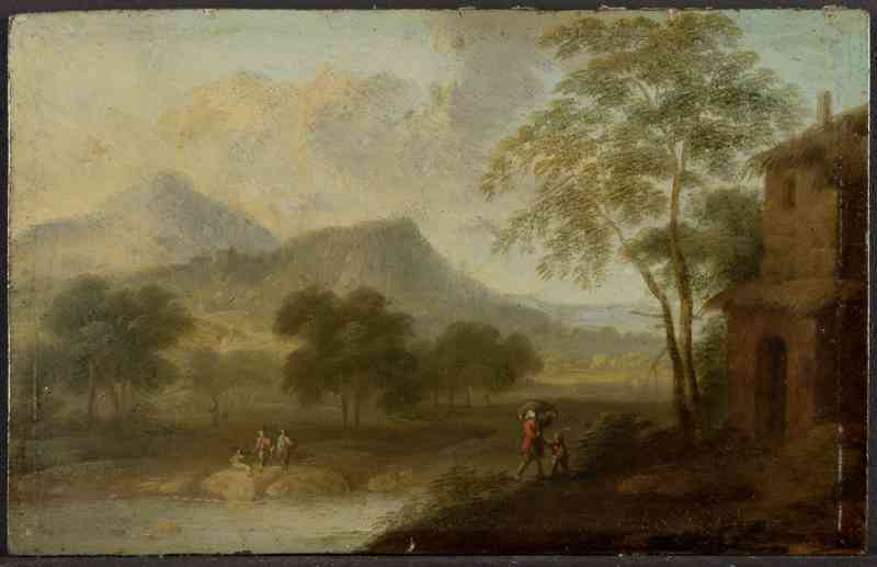 Pr261 zeigt eine ideale südliche Landschaft unter heiterem Himmel in einfacher Komposition. Auf einer Uferböschung rechts erhebt sich ein von lichten Bäumen umstandenes zweistöckiges Haus. Hinter dem kleinen Teich links im Vordergrund erstreckt sich eine am Horizont von hohen Bergen abgeschlossene baumreiche Ebene mit einer Stadt in der Ferne. Am Ufer des Teichs stehen oder sitzen drei Staffagefiguren. Das in Anlage und Ausführung flüchtige und belanglose Bildchen mit seinen warmen hellen Farben mag die Familie Prehn an einige der Radierungen Gabrielle Perelles (um 1603–1677) erinnert haben. Jedoch hat es mit den ideal-klassischen Landschaften dieses französischen Malers und Graphikers ebenso wenig zu tun wie mit den italianisanten Landschaften von Jan van Huysum (1682–1749). Eine nähere Eingrenzung der schwachen, zeittypischen Arbeit ist wohl kaum möglich.