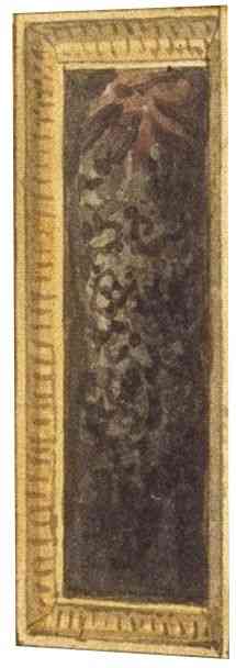 Die Traube an einem Band, die im Auktionskatalog der Sammlung Prehn von 1829 dem in Amsterdam tätigen Stilllebenmaler Willem van Aelst (1627–1683) zugeschrieben wird, ist auf Carl Morgensterns (1811–1893) Aquarell des Bildersaales im vorderen Teil der Längswand in der zweiten Reihe von unten zu erkennen. Es handelte sich offensichtlich um ein recht einfaches Arrangement, bei dem die üppige Traube oben mit einer rötlichen Schleife befestigt war und die ganze Bildfläche ausfüllte. Im Œuvre von Willem van Aelst lässt es sich nicht auf den ersten Blick verankern, denn dessen Blumen- und Fruchtstücke zeigen zumeist große Eleganz in der Komposition und Raffinesse in der Beleuchtung. Eine hängende Traube ist von seiner Hand bisher nicht bekannt. Es lassen sich aber für einen grundsätzlichen Vergleich Stillleben mit dieser Motivik von anderen Malern heranziehen.